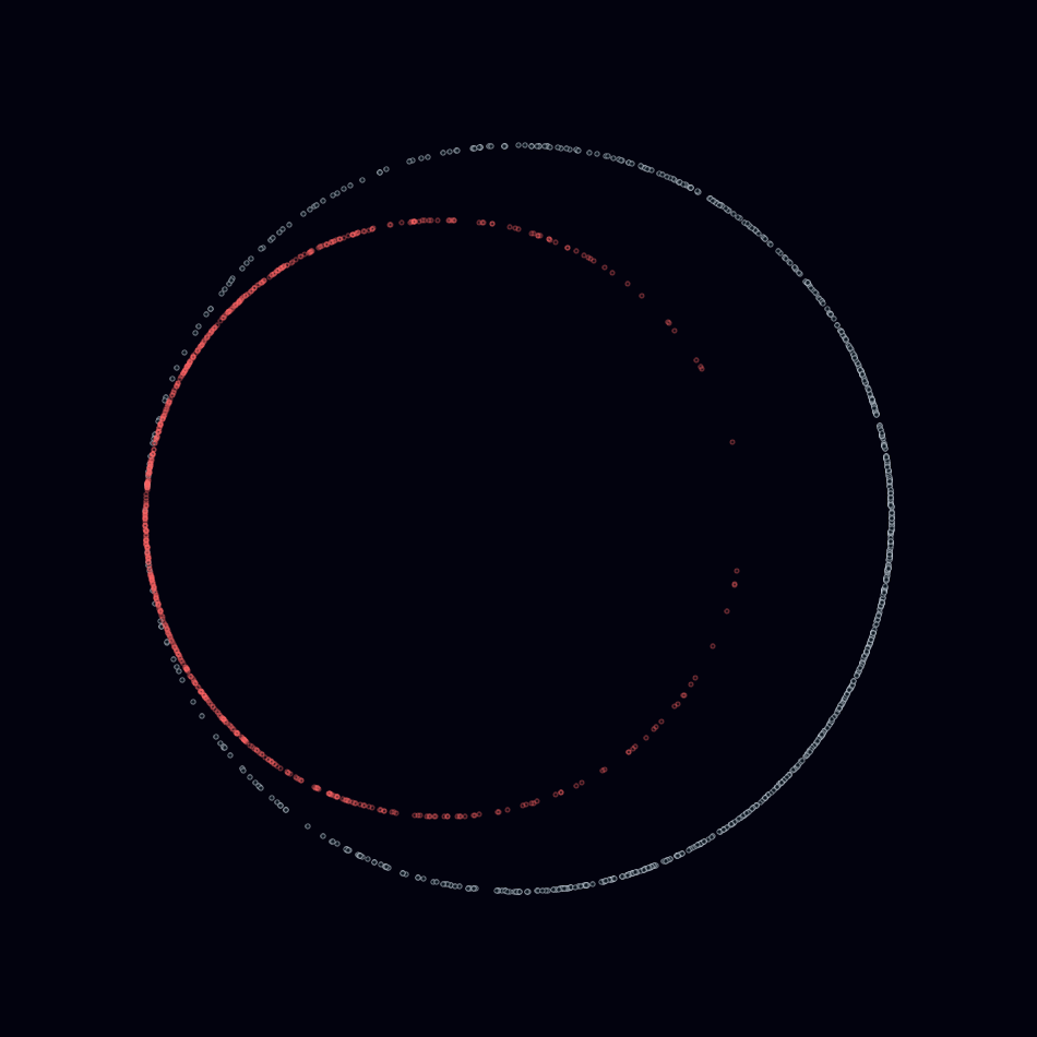 Drawing a moon with lines meant endpoints, lots of endpoints, so I wrote a quick prototype that would generate points at a random position on the circumference of a given circle.